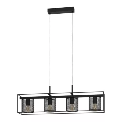 The EGLO Trend & Style CATTERICK indoor lamp is designed in a vintage style with a black steel cover. The lamp has a maximum power of 4x40W and features an E27 socket; however, the light source is not included with the product. The lamp is dimmable and operates without a switch. Product dimensions: length 910 mm, width 165 mm, height 1100 mm. The gross weight is 3.88 kg, and the volume is 48.852 m³. The warranty period is 2 years.