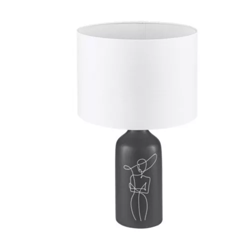 Discover the vintage-style EGLO Trend & Style table lamp, the perfect addition to indoor lighting. The elegant black color of the ceramic casing and the white textile shade create harmony in any interior. The E27 socket-compatible light source is not included, allowing you to choose the ideal bulb to achieve your desired brightness and ambiance. The maximum power is 1x40W, providing sufficient illumination. The table lamp is dimmable and operates with a cord switch, making it easy to adjust the brightness. With an IP20 rating, it meets the requirements for indoor use. Product dimensions: 535 mm height, 300 mm diameter. Weighing 2.296 kg, the lamp stands steadily on the desired surface. A 2-year warranty ensures reliability. An optimal choice for those who appreciate stylish and functional lighting.