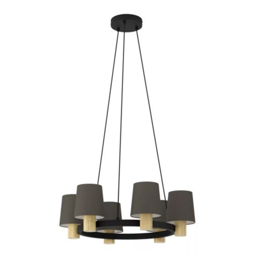 Discover the EGLO Trend & Style EDALE indoor lamp, which stands out in your home with its vintage style and elegant design. The lamp features a steel and wood cover in black and brown colors, while the cappuccino-colored textile shade provides pleasant lighting. It has an E27 socket, allowing for the use of light sources with a maximum power of 6x40W. Please note that the light source is not included with the product. The lamp is dimmable, providing the option for light regulation. The device has an IP20 protection rating and belongs to protection class I, making it suitable for indoor use. Enjoy the vintage atmosphere and functional design with this beautiful lamp, which measures 1100x700 mm and has a gross weight of 5.83 kg. The product comes with a 2-year warranty.