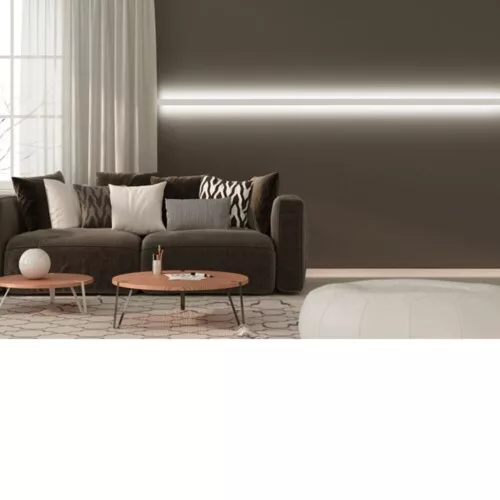 A surface profile that can be mounted on walls features a white textured aluminum coating and a satin plastic cover. The product length is 100 cm. With the simple mounting of two LED strips, it transforms into an elegant lighting fixture that creates a magical atmosphere in your home with both upward and downward lighting. The aluminum profile is quick to install, cools, protects, and enhances the effect of the LED strips. Various available designs can be combined, allowing for the creation of a unique interior space. LED lighting creates accents in your living areas and seamlessly fits with any modern interior design style thanks to its premium appearance. The product does not include a light source.