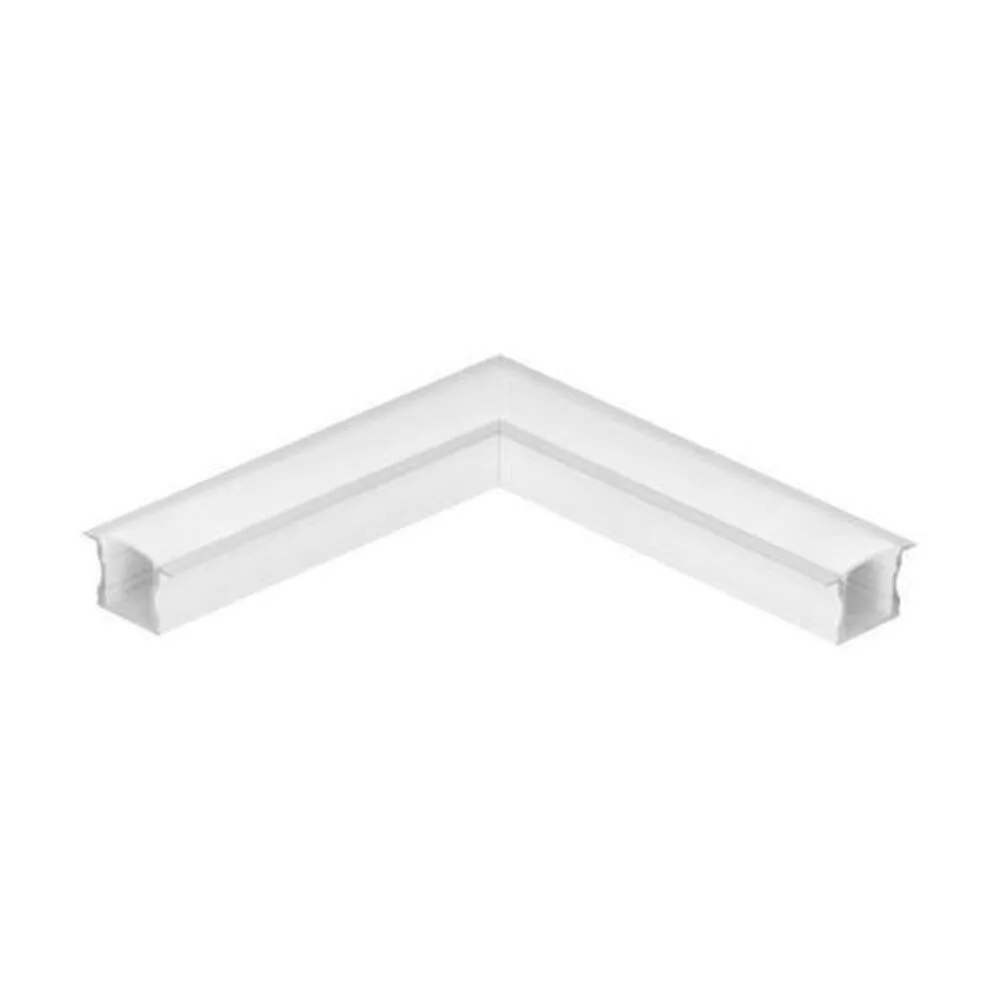 A RECESSED PROFILE 2 is a prefabricated corner connector that offers an elegant solution for indoor lighting. The product features a textured white aluminum casing and a white plastic cover, with a length of 11 cm and a horizontal angle of 90°. It is suitable for both interior and exterior corners. By simply attaching an LED strip, the profile transforms into a stylish light fixture, creating a magical atmosphere in your home. The aluminum profile is quick to install, while cooling, protecting, and highlighting the LED strips. The various available shapes can be combined, allowing you to customize your interior space. LED lighting creates highlights in your living area, and its high-quality design perfectly fits modern interior styles. The light source is not included with the product.