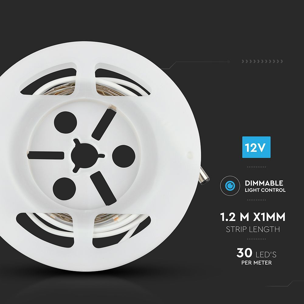 Designed for easy installation, the product boasts an IP20 rating, making it suitable for indoor use. The 1.2-meter long light strip features SMD LED chip technology, delivering an impressive output of 350 lumens per meter with an energy rating of F (2021). The dimmable functionality allows you to adjust brightness levels from 10% to 100%, catering to your mood and needs.
