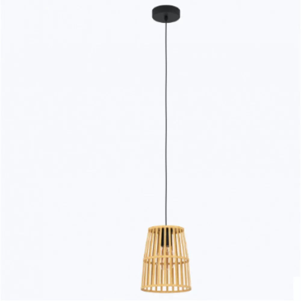 Modern-style, EGLO EYAM suspended LED lamp, black steel lamp with bamboo shade provides ideal lighting in the room. With E27 socket - light source NOT included. Available in several versions. Application: kitchen, dining room