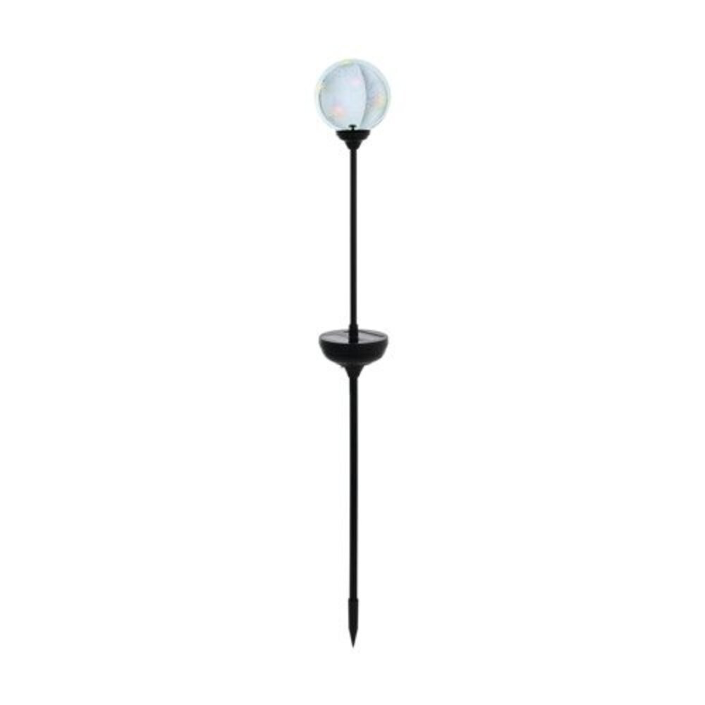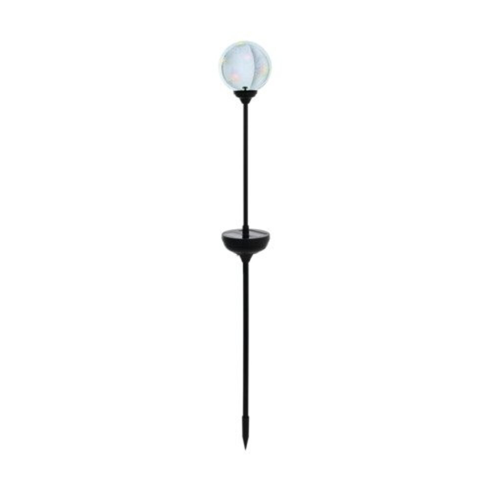 The elegant design of the solar lamp and its iridescent glass creates a special light effect in outdoor areas. The black steel and plastic casing gives the lamp a modern appearance. The light source is included with the product, which operates with LED technology and has a maximum power of 1x0.06W. The rechargeable AA Ni-Mh 300mAh battery ensures the lamp's long operating time, which can range from 6 to 8 hours. This practical and stylish outdoor lamp is an ideal choice for creating cozy lighting.