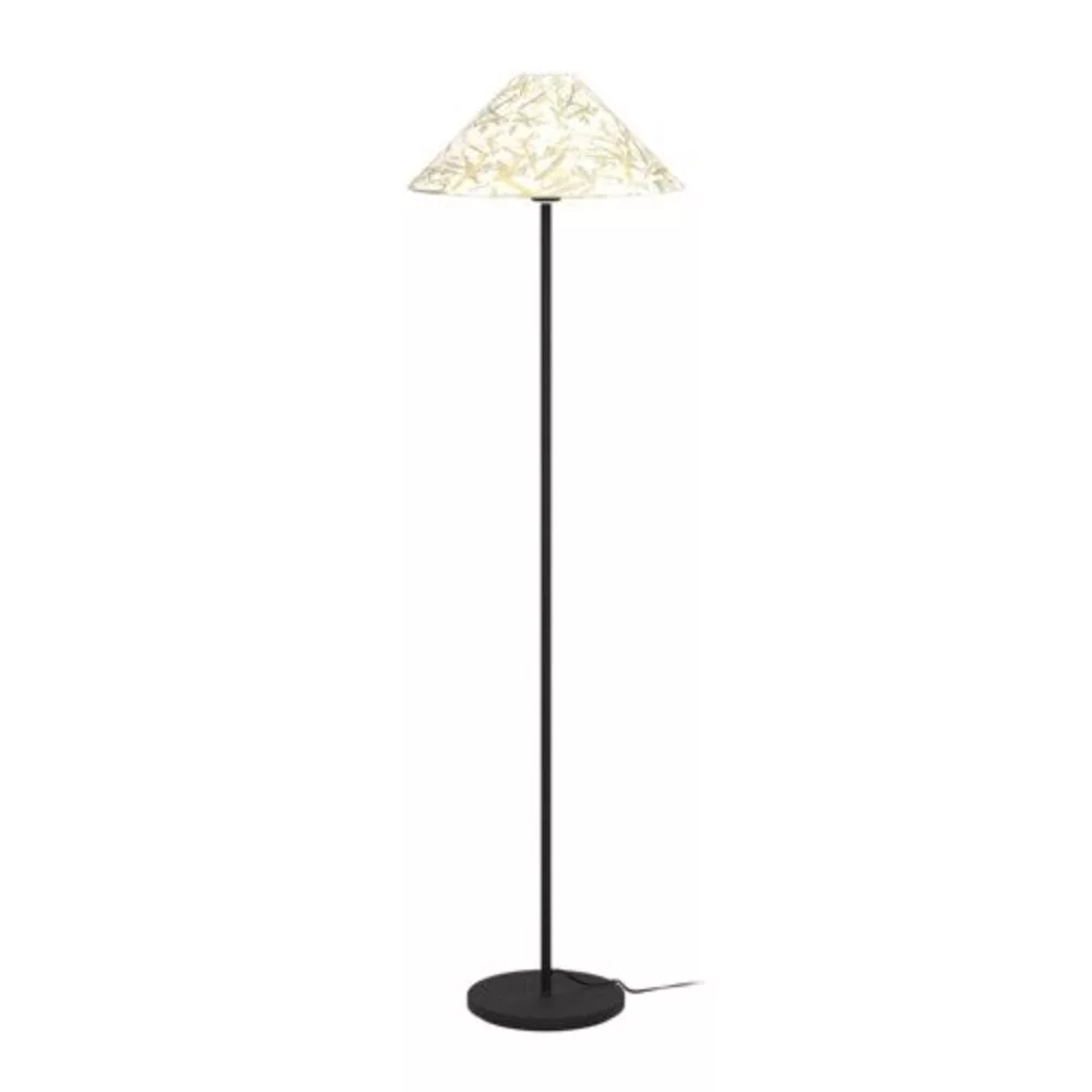 The OXPARK floor lamp, with its vintage style and elegant appearance, enhances any interior space. Under the black steel casing, there is a fabric shade adorned with delicate bamboo leaves, creating a fresh and natural effect. The lamp uses an E27 type light source, which is not included with the product, allowing for easy customization with any suitable bulb. The maximum power is 1x25W or 12W, making it an ideal choice for creating a cozy atmosphere. The dimmable feature allows for adjusting the desired brightness. With an IP20 protection class, it guarantees safety for indoor use. The product dimensions are: height 1465 mm, diameter 420 mm, base diameter 250 mm. The lamp weighs 4.947 kg and comes with a two-year warranty.