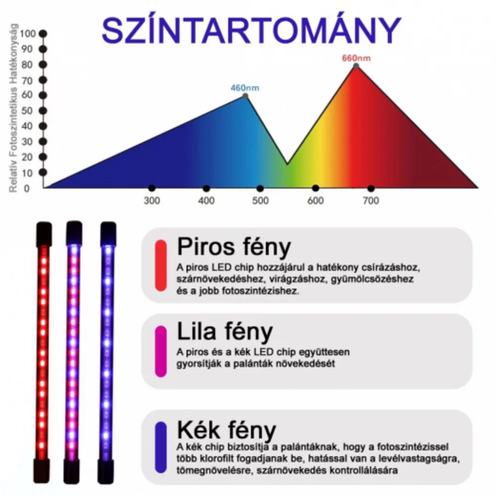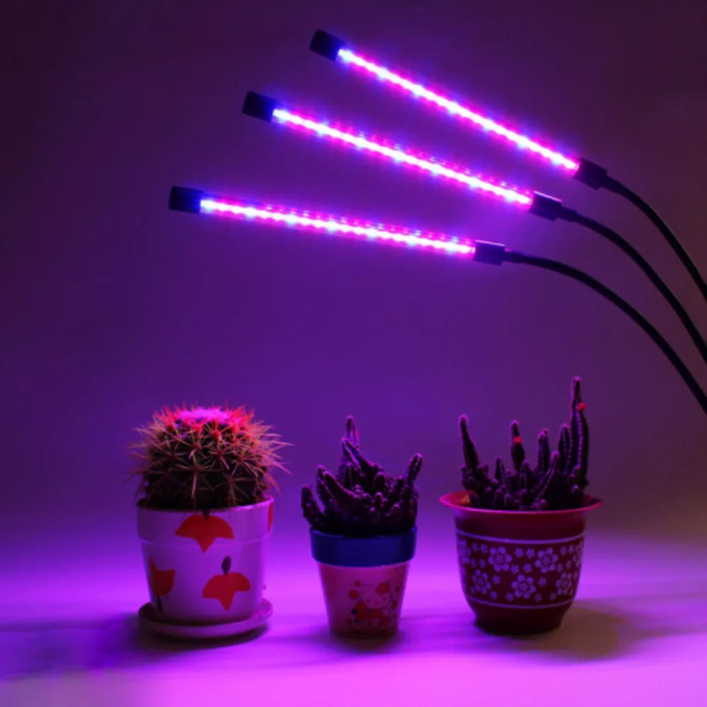 Plant growing LED lamp, 3 arms, 12 Watt, USB, pinchable, dimmable, timeable, IP44