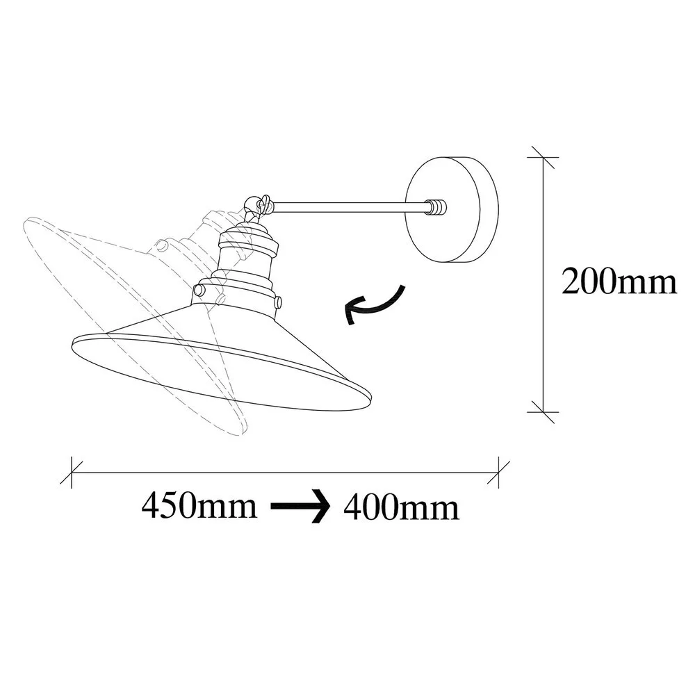 With its generous size of 25 x 40 cm and a height of 20 cm, our Wall Lamp provides ample lighting to brighten up any area. The cap's diameter of 25 cm and height of 8 cm ensures a wide and even distribution of light, creating a warm and inviting ambiance.