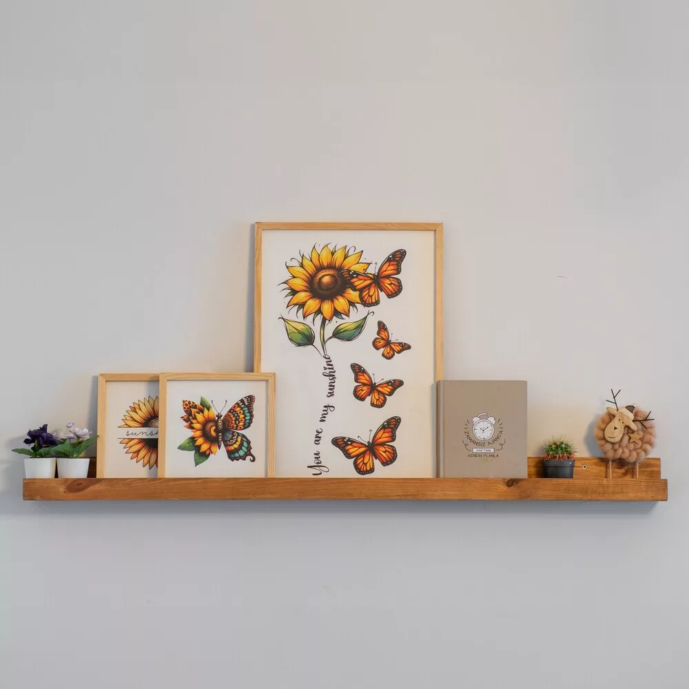 Enhance the beauty of your walls with this stunning wooden shelf, perfect for displaying your favorite photos, plants, or trinkets. Its sleek design and natural wood finish will effortlessly complement any decor style, from modern to rustic.