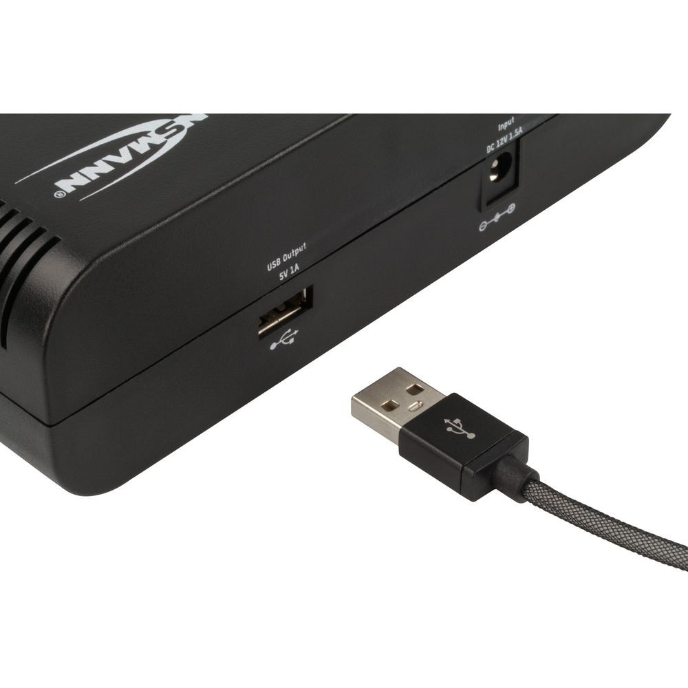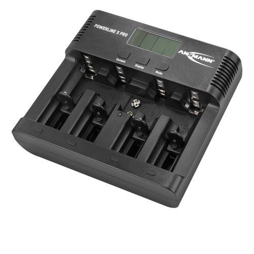 ANSMANN charger Powerline 5 Pro for charging NiMH / NiCd batteries in sizes Micro / AAA / LR03, Mignon / AA / LR06, Baby / C / LR14, Mono / D / LR21 and 9V-block / 6LR61. Max. Charging current per cell type: 4x Micro at 800mA; 4x Mignon at 1500mA; 2x Mignon at 1800mA; 4x Baby at 800mA; 2x Baby at 1800mA; 4x Mono at 800mA; 2x Mono at 1800mA; 1x 9V-Block at 15mA. Technical parameters: -dU cut-off; single slot monitoring; overcharge protection; discharge function; refresh function; battery defect detection; safety timer. The unit can be used worldwide and for charging in cars. 3 years warranty