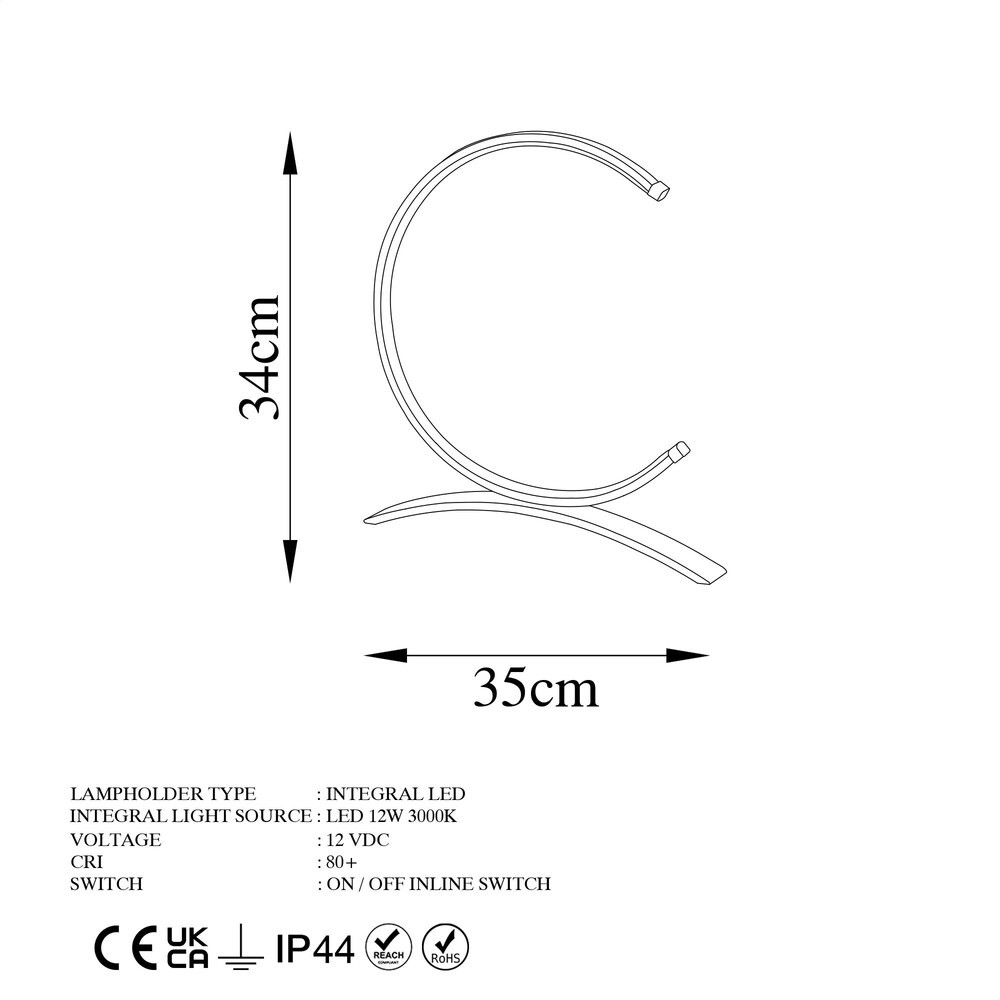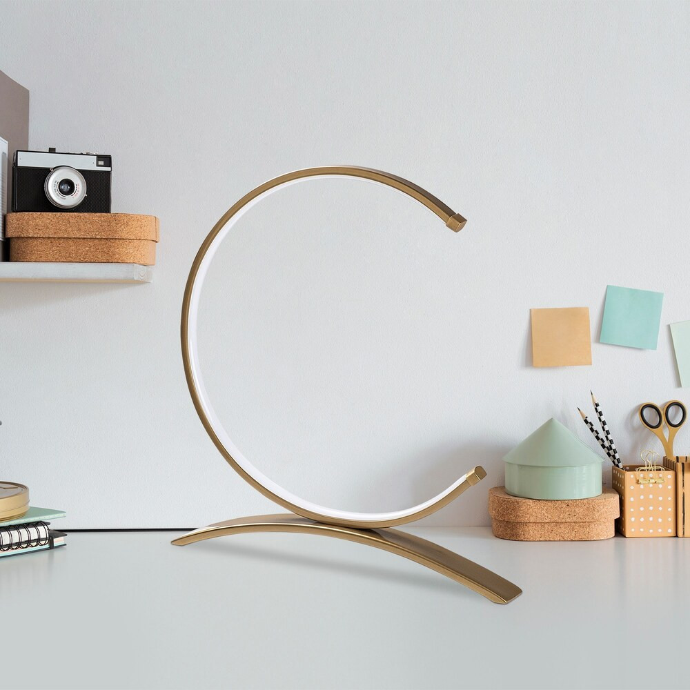 Elegant gold table lamp, metal housing, 35 cm width x 34 cm height x 4 cm depth | 12W LED socket, 3000K warm light, 80 CRI | Stylish lighting for home and office use, on/off switch, 200 cm cable