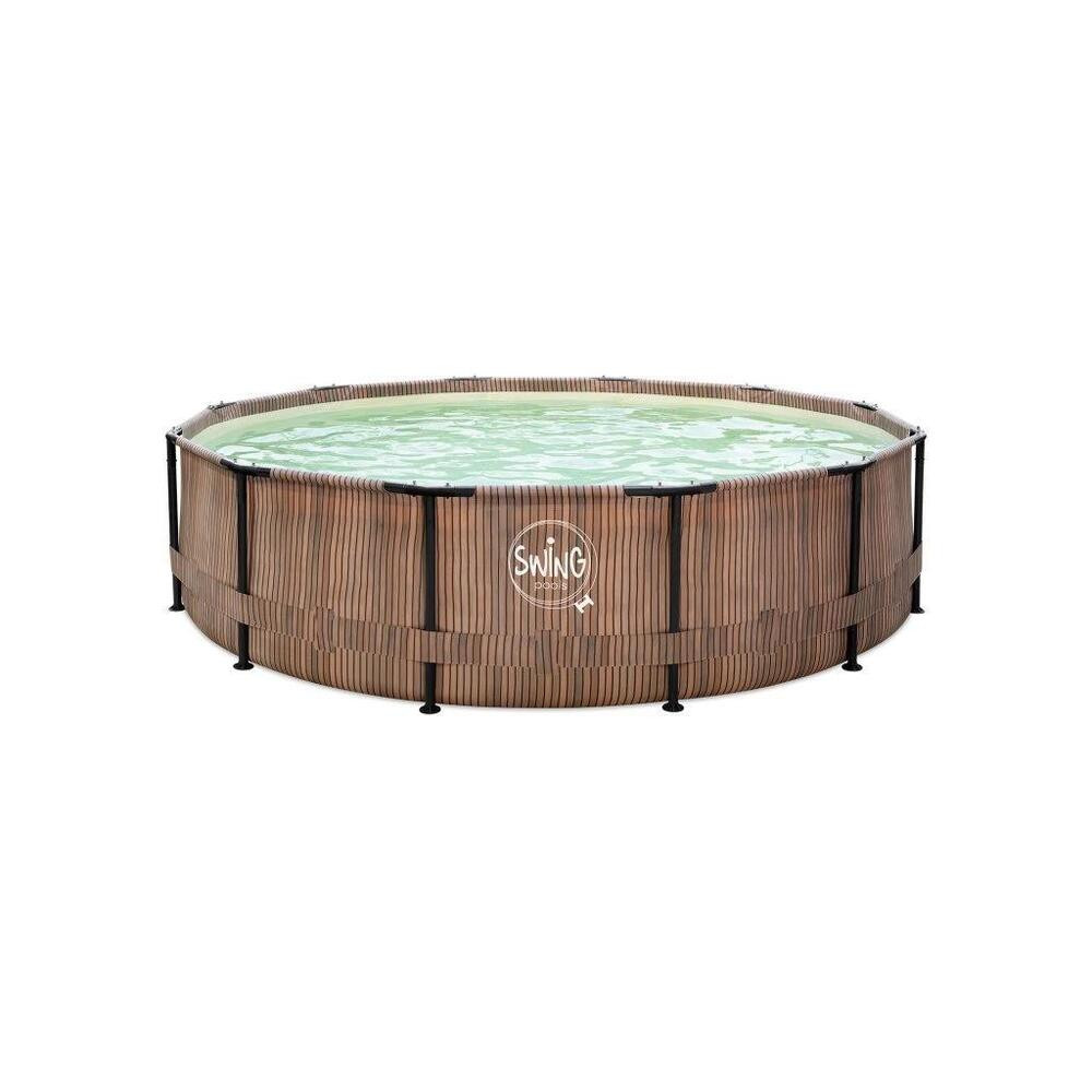 Swing metal frame pool 3.05*76 cm with teak wicker effect black skimmer
