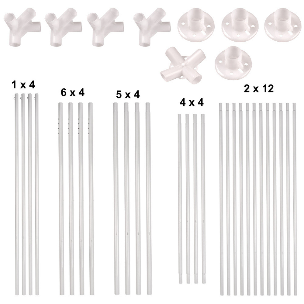 including the cover, frame, connectors, and anchor pegs, allowing for quick and easy set-up.