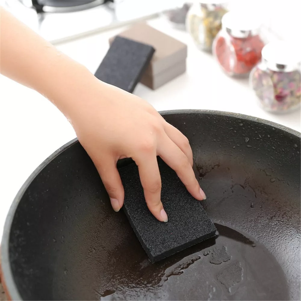 A magic sponge made of foam covered with a rough texture resembling sandpaper.