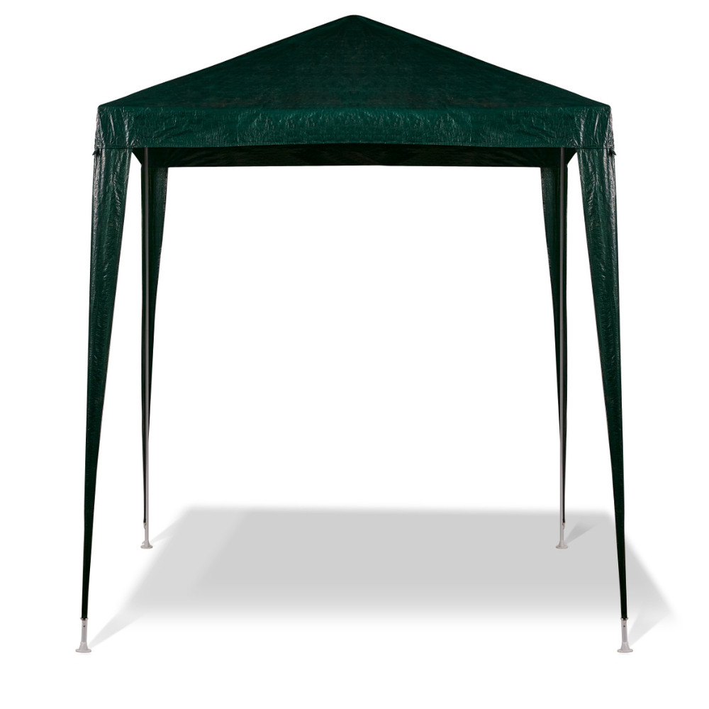 Large green garden pavilion. Perfect for family garden parties. Its 2x2 dimensions allow you to place a table and chairs underneath. It provides protection from the sun and light rain. The frame is made of metal tubes, making the entire structure stable.
