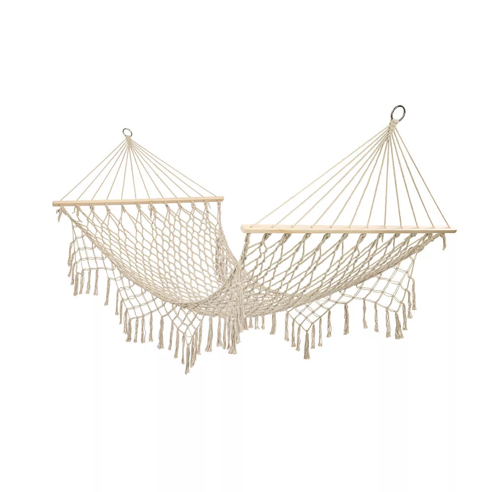 Garden hammock boho mesh fringed 200cm ecru