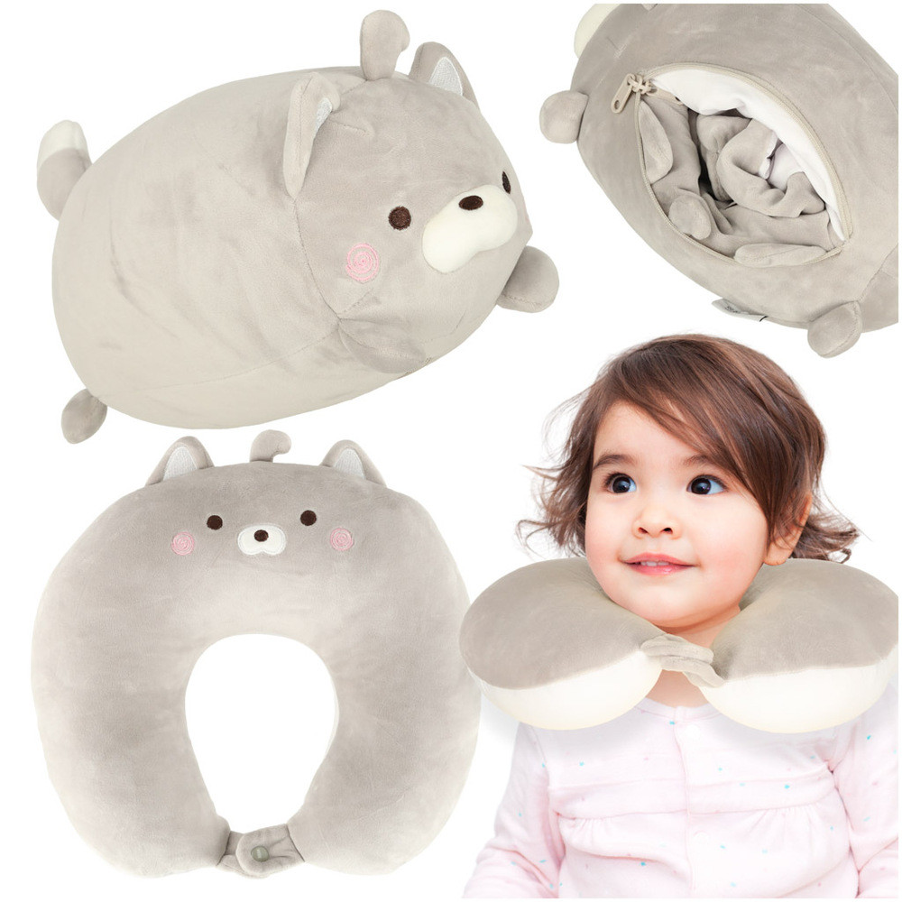 Travel pillow 2in1 neck roll airplane car mascot cat