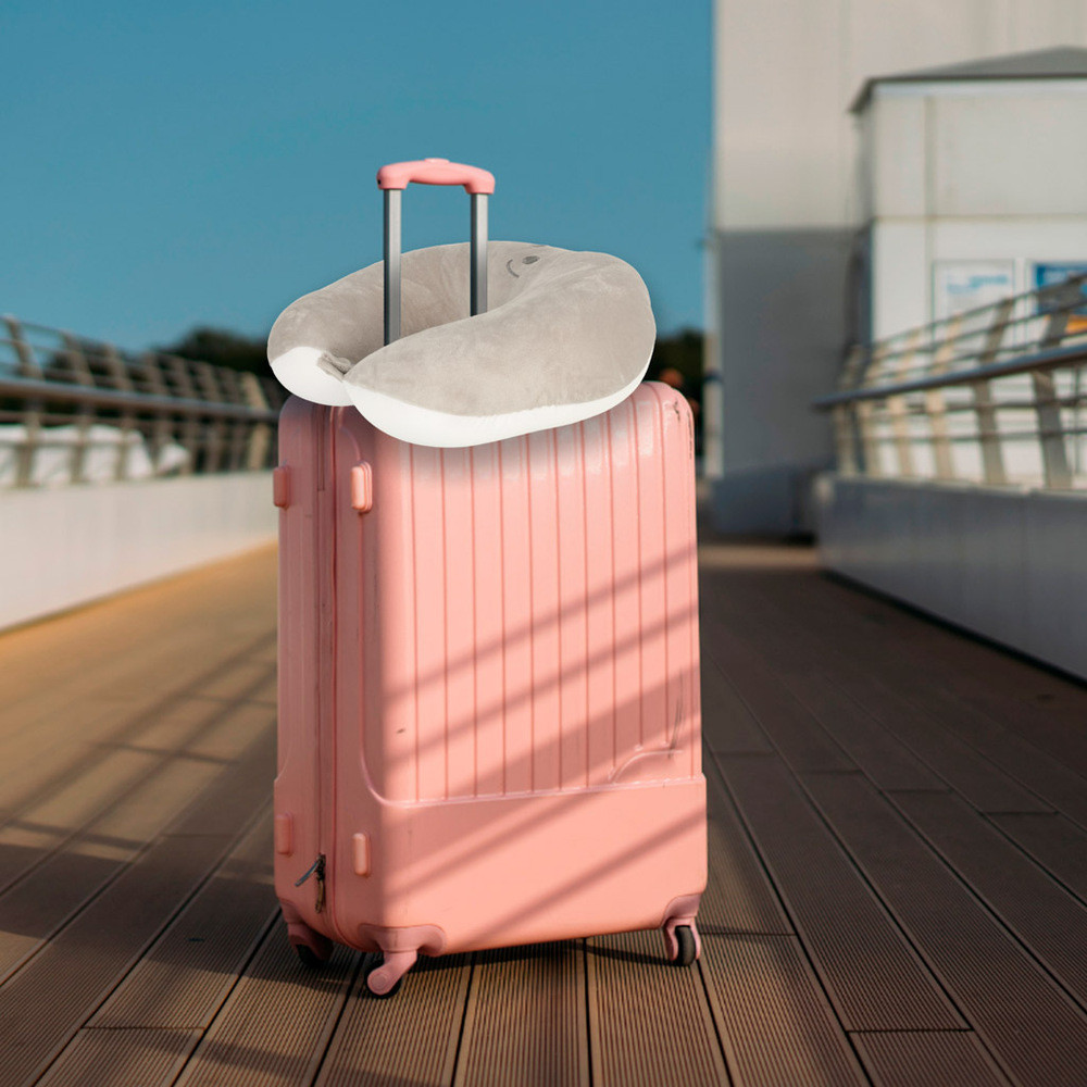 painful strain. Its compact size means it fits into any backpack, suitcase, or carry-on bag. Additionally, the pillow is equipped with a practical snap - you can attach it to your luggage so it's always at hand.